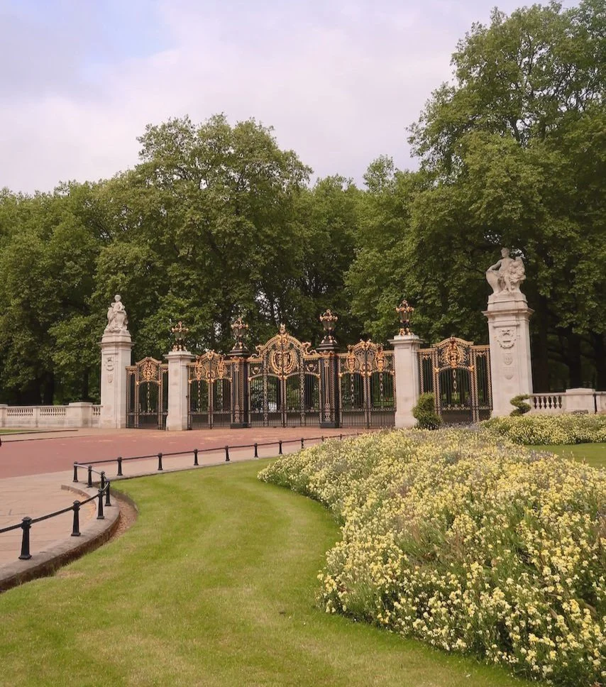 The Canada Gate at the southeastern corner leads out to the Victoria Monument and Buckingham Palace and is the park’s formal entrance. The gates were a gift from Canada and metalwork includes the crests of Canadian provinces.