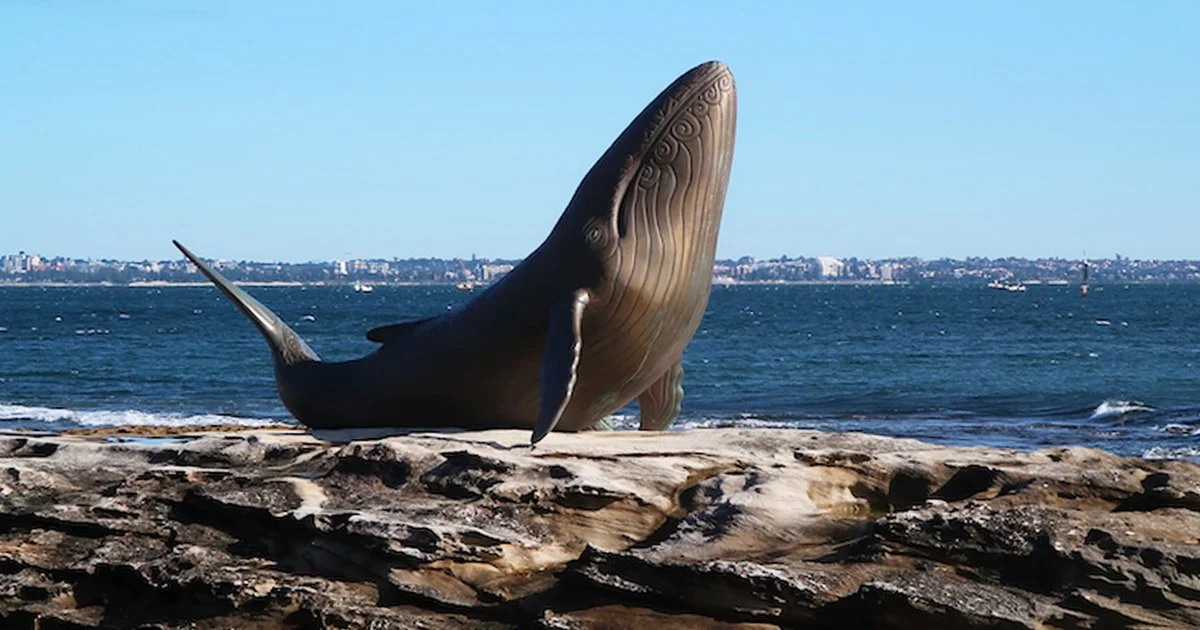 The Whales and Nuwi Canoes are the work of artists Theresa Ardler and Julie Squires. The first speaks to the dreaming of the Dharawal people and their connection to the sea and the second, to their fishing history. The woven net that sits alongside the whale figures was cast from a net created by master weaver Aunty Phyllis Stewart.