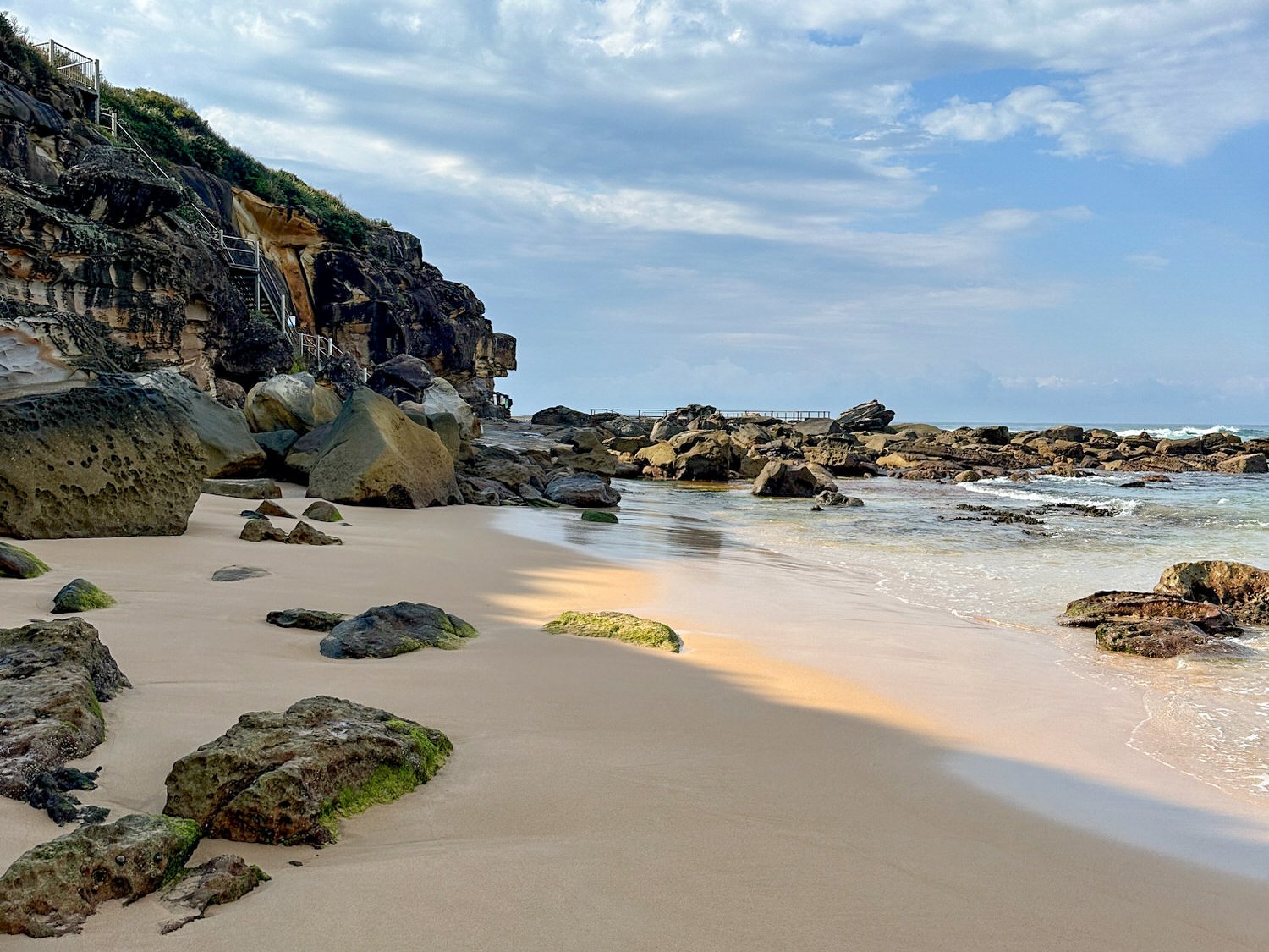 Continue toward North Curl Curl Pool, tucked into the base of the headland. This pool is something of a hidden gem - large, tranquil at low tide, and partly cut off from the beach at high tide.